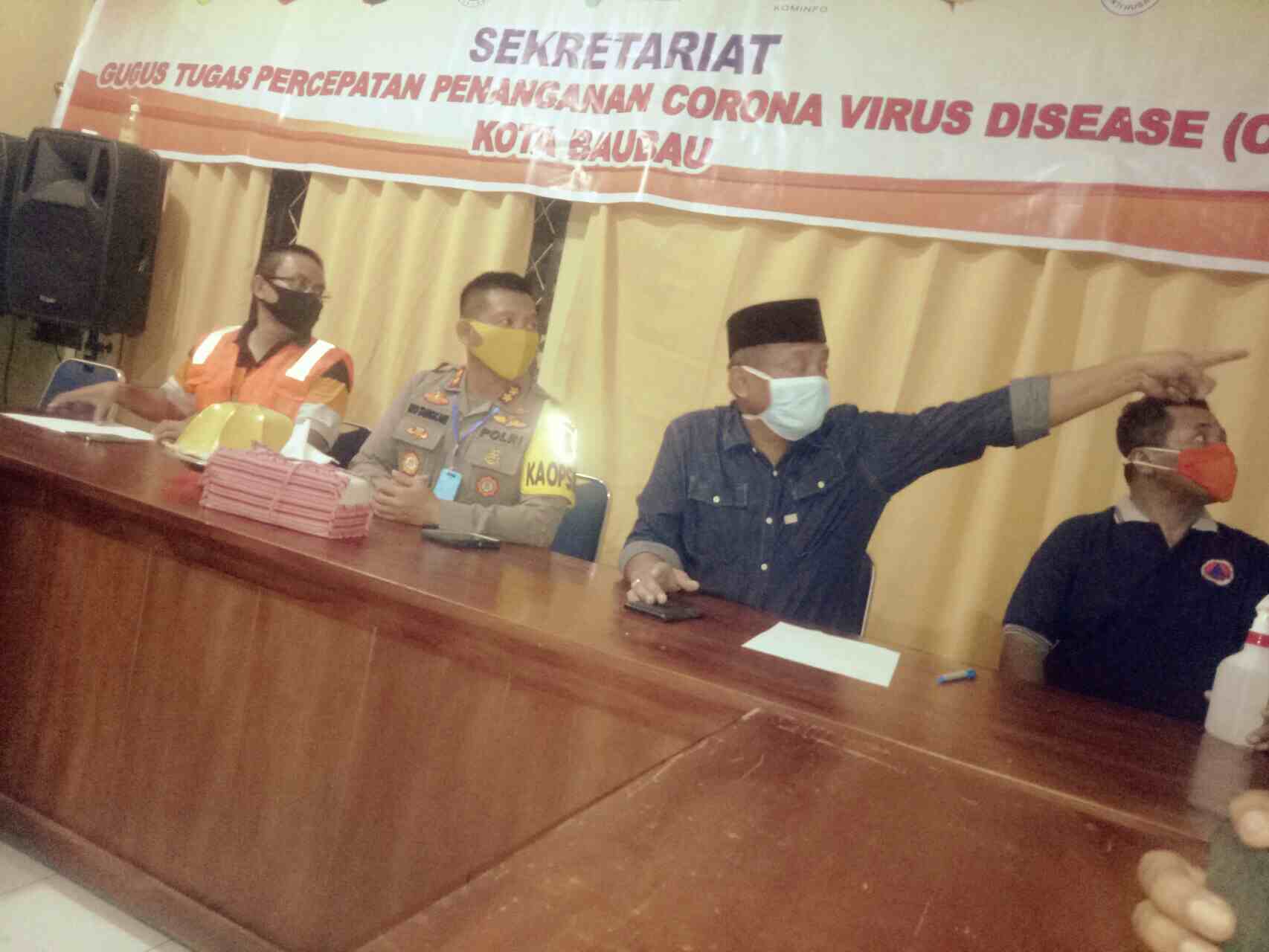 Sabtu (25/4/20) malam, Gugas Covid-19 Kota Baubau menggelar konferensi pers yang dihadiri langsung: Sekretaris Daerah Kota Baubau, Dr Roni Muhtar MPd (Pengarah juga selaku Juru Bicara), Kapolres Baubau, AKBP Rio Chandra Tangkari (Wakil Ketua), dokter spesialis penyakit dalam, dr Lukman ( Juru Bicara / Ketua Satgas Covid-19 RSUD Baubau sebagai RS rujukan pasien Covid-19), Kepala Pelaksana Badan Penanggulangan Bencana Daerah (BPBD) Kota Baubau, La Ode Muslimin Hibali (Satgas penganggulangan bencana).