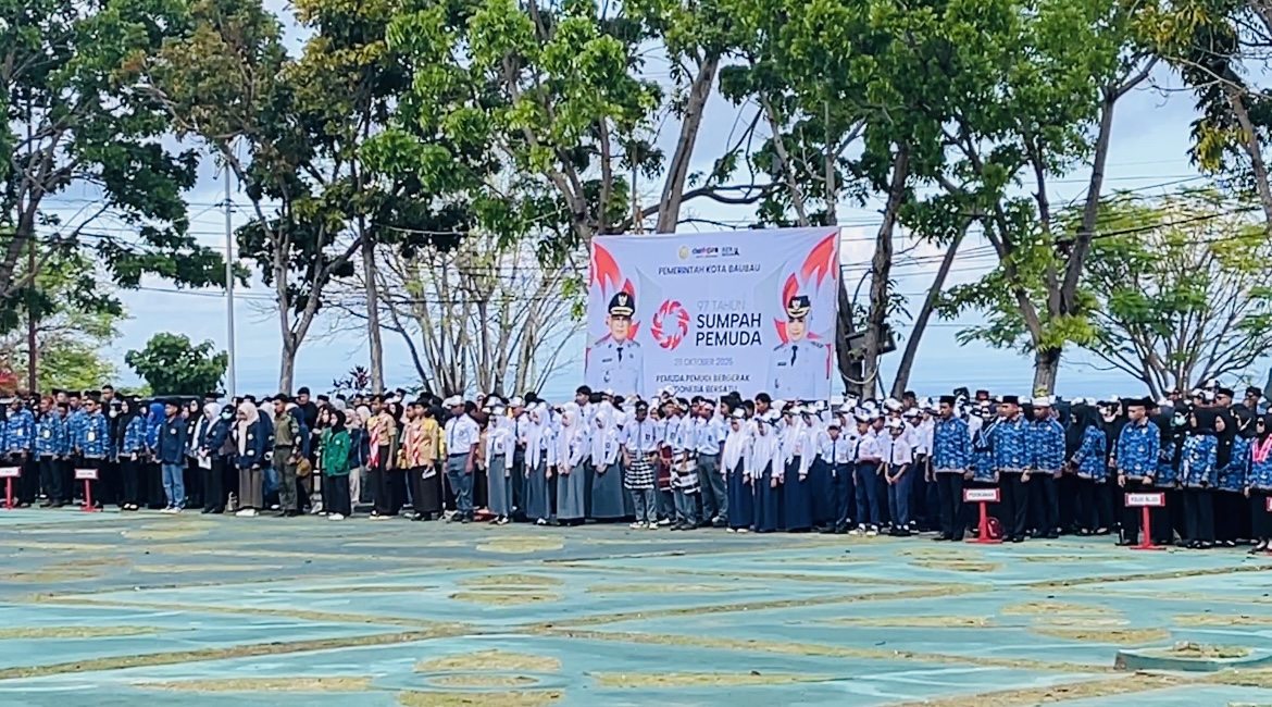 Upacara peringatan Hari Sumpah Pemuda ke-97 Tahun, yang jatuh pada 28 Oktober 2025, berlangsung penuh hikmah, di pelataran kantor Walikota Baubau.