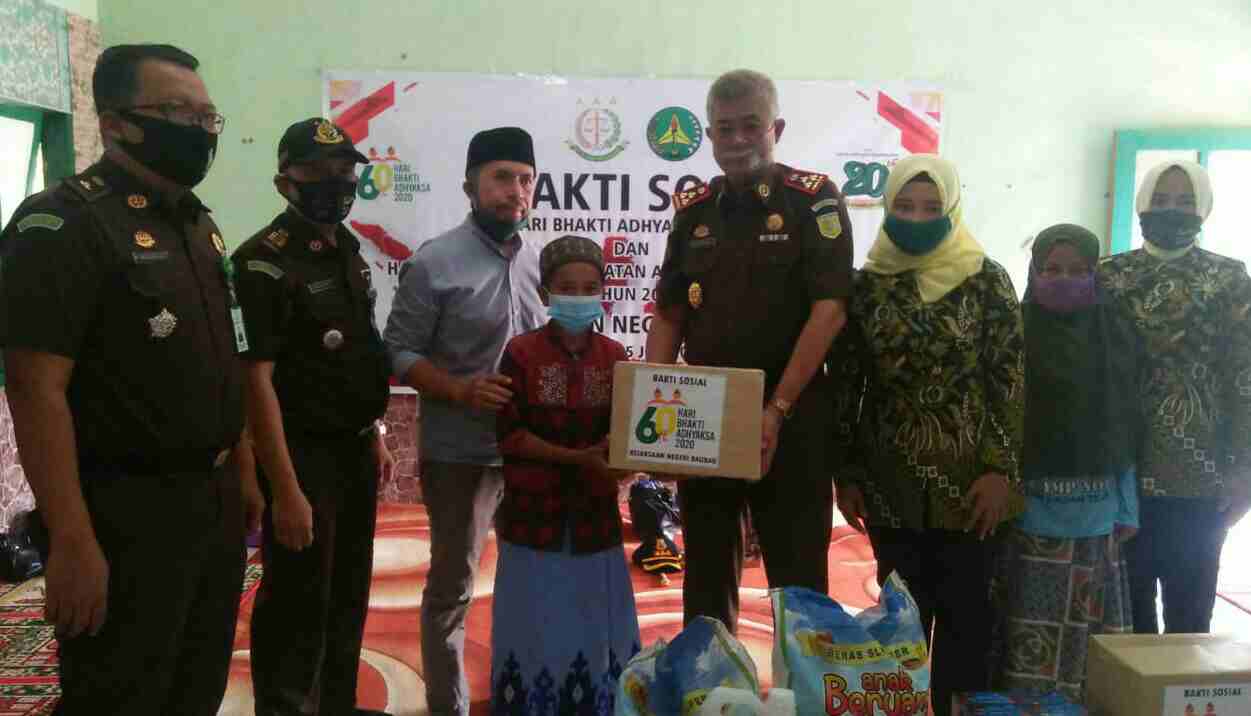 Masih dalam rangkaian peringatan Hari Bhakti Adhyaksa (HBA) ke- 60 dan HUT XX Ikatan Adhyaksa Dharmakarini, Kejaksaan Negeri (Kejari) Baubau berbagi bantuan kebutuhan pokok di Panti Asuhan Muslimin. Beranjangsana, Kamis (16/7/20) dalam gelar Bakti Sosial (Baksos) dengan anak yatim piatu, dan pengelola Pesantren, Kepala Kejaksaan (Kajari) Baubau, Jaya Putra SH didampingi sang Istri, Ny Eka Setiawati Jaya Putra SH, selaku Ketua Ikatan Adhyaksa Dharmakarini (IAD) Baubau, bersama rombongan unsur pimpinan, staf / karyawan, juga Ibu-Ibu IAD Kejari Baubau.