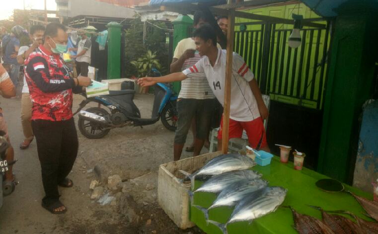 Ketua DPC Gerindra Kota Baubau, Nasiru (turun langsung membagikan masker kepada warga)