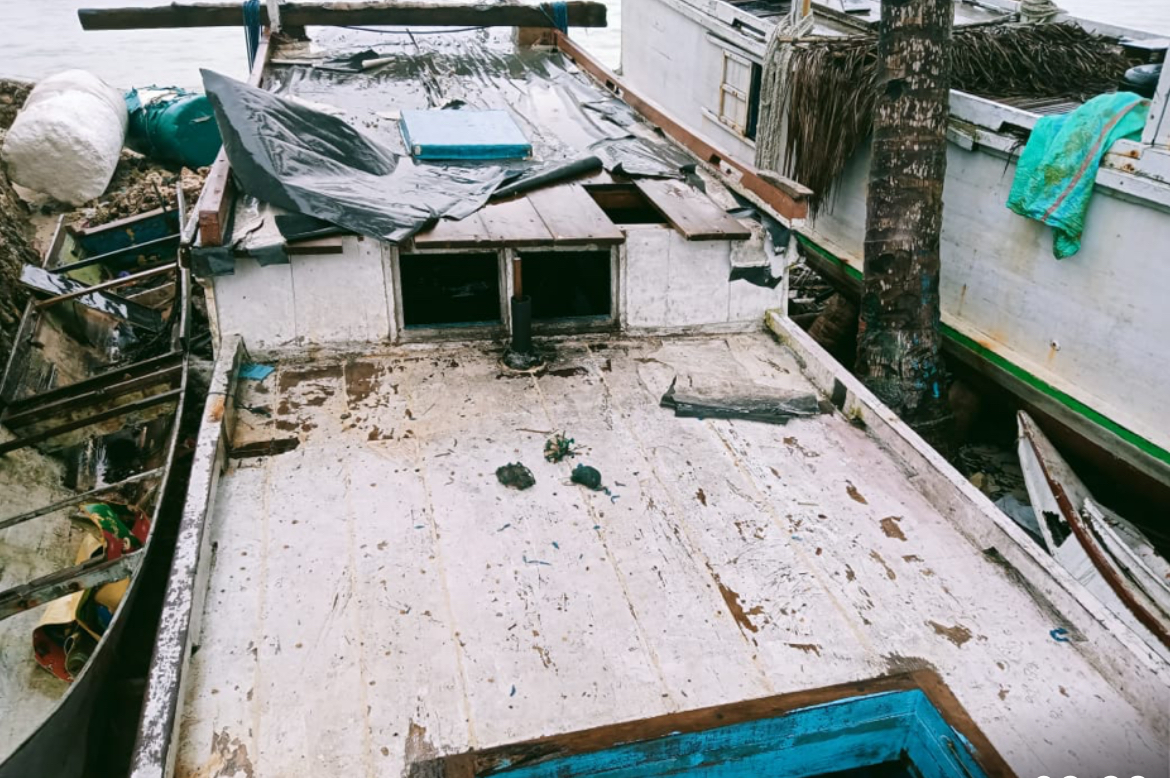 Kapal nelayan Bahari 3 Sampolawa setelah berhasil dievakuasi.
