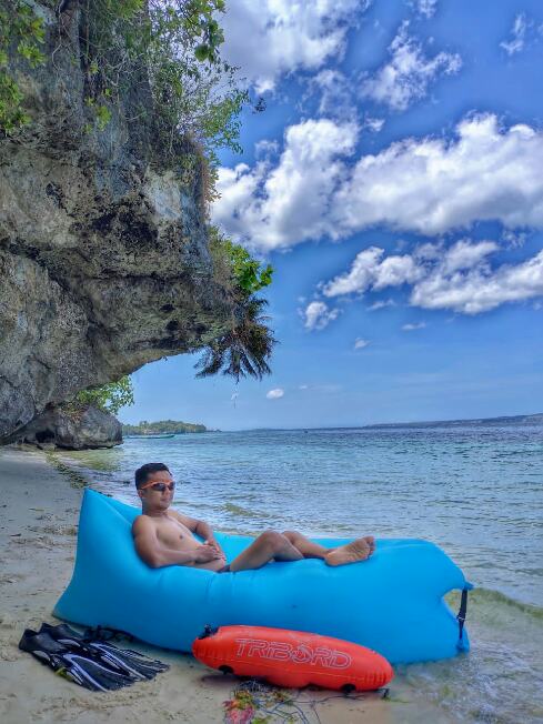 Pasirnya putih nan lembut, nyaman menjadi pijakan kaki, duduk santai atau berbaring santai menawan terik mentari.
