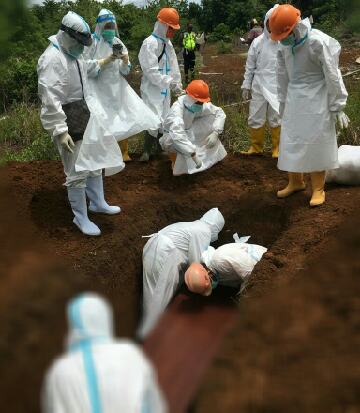 Satgas Covid 19 Baubau menurunkan tim / personil pemakaman standar covid 19.
