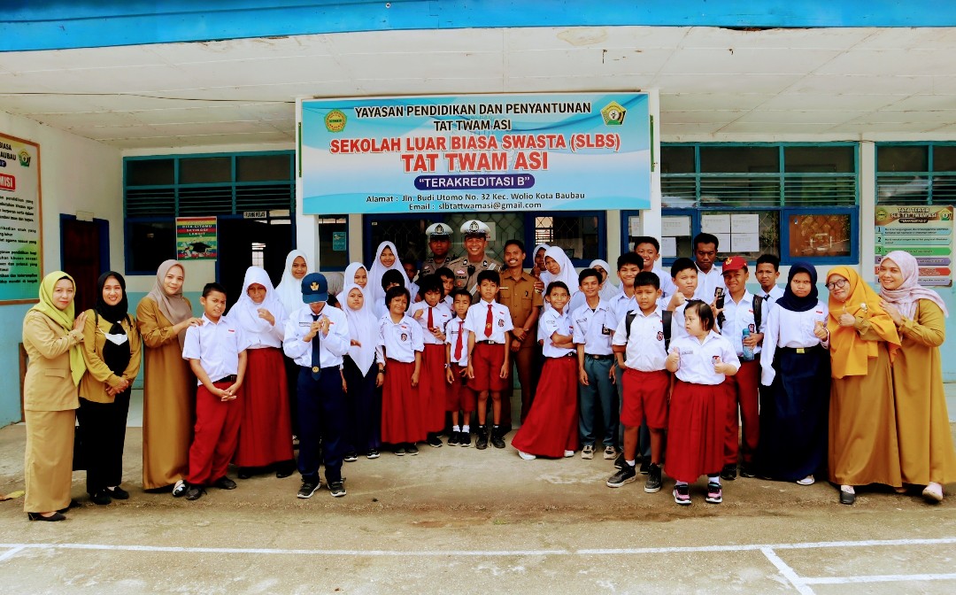 Satlantas Polres Baubau Sosialisasi Tertib Berlalulintas di SLB Tat Wam Asi.