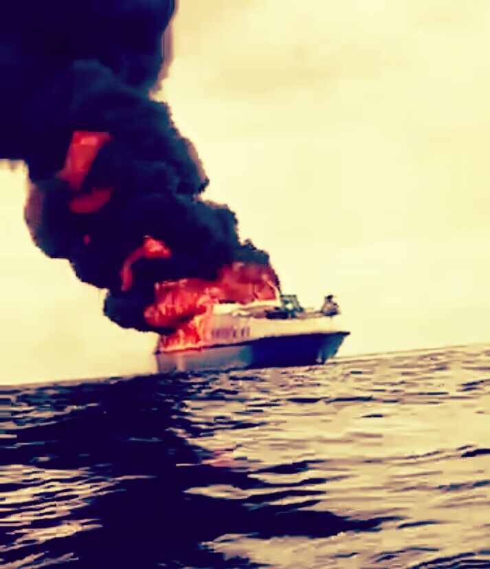Pukul 12.00 Wita, Koki Kapal, Rustam (50) melihat api di bagian belakang Kapal, yang langsung membesar. Seketika itu Rustam langsung berteriak “ada api”.