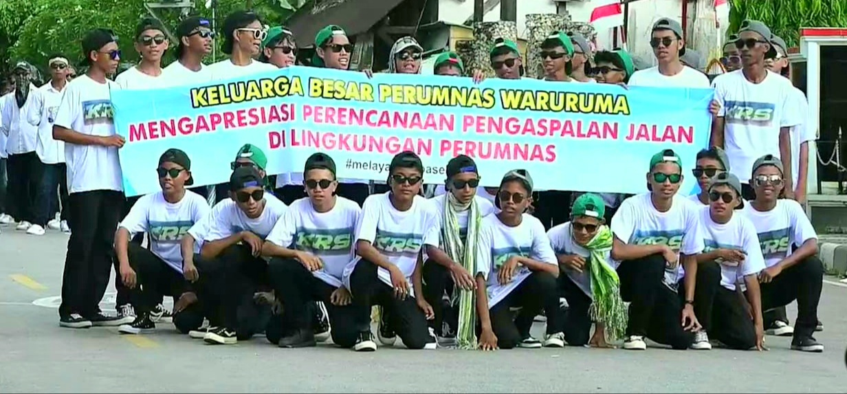 Bardin pun mrmbacakan isi spanduk, dan kembali memuji barisan KRS. Ia juga mengucapkan selamat kepada warga Perumnas Waruruma.