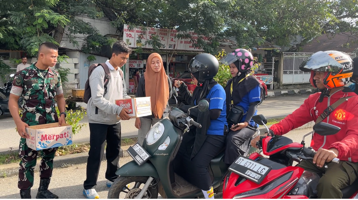 Penggalangan donasi oleh Yonif TP 823/RW, Kamis sore hingga petang, 5 Desember 2025 ini, dilakukan di Pasar Laelangi, Pasar Karya Nugraha, Pasar Wameo, dan lampu merah Tugu Kirab.